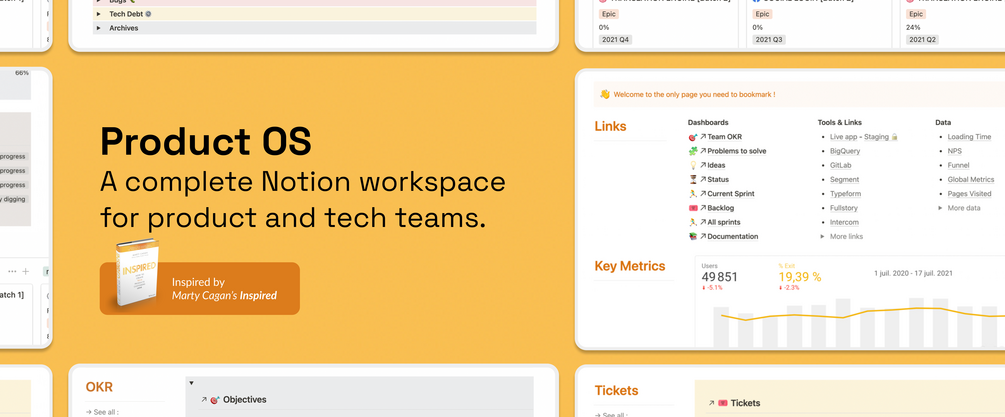 I'm currently setting up my Notion space to welcome the team. While wondering how to configure the best tool possible, I found out about "Product OS": a pre-made Notion's template for sale. If your team runs on Notion, it's a 50€-buy that makes a lot of sense.